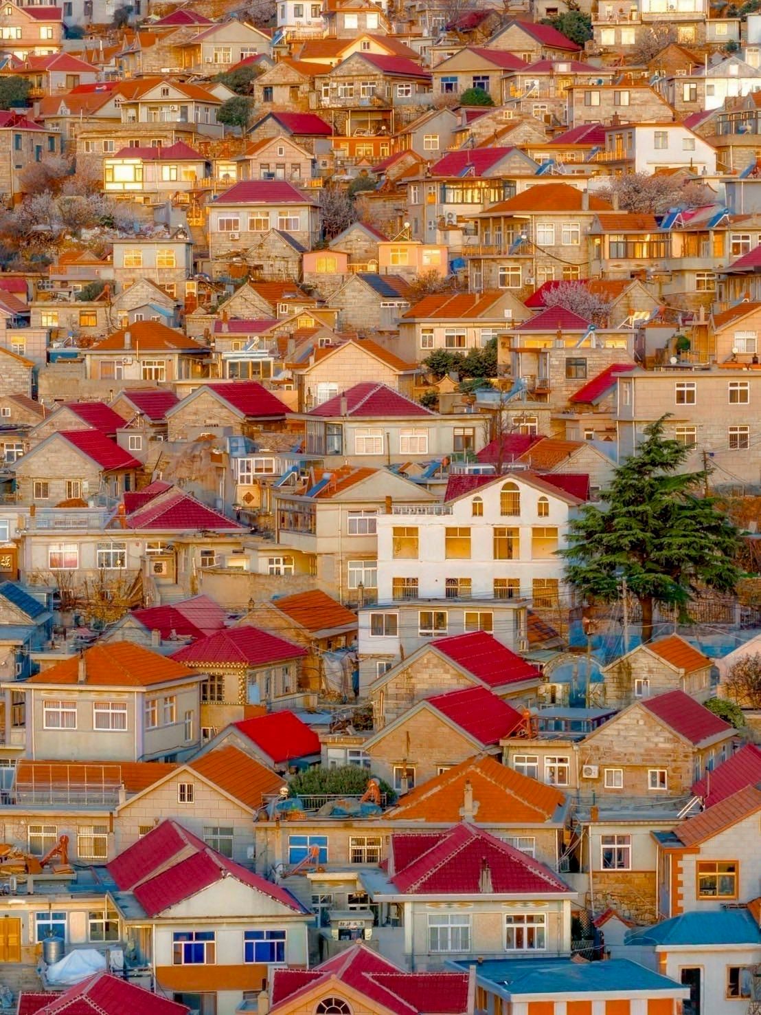 บ้านเรือนหินผนังสีอ่อนและหลังคากระเบื้องสีแดงเรียงรายตามไหล่เขา จนถูกขนานนามว่าเป็น “เมืองในเทพนิยาย” โดยเฉพาะยามพระอาทิตย์ตก แสงสีทองสะท้อนหลังคาแดงงดงามเกินบรรยาย