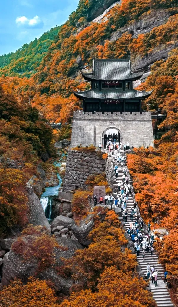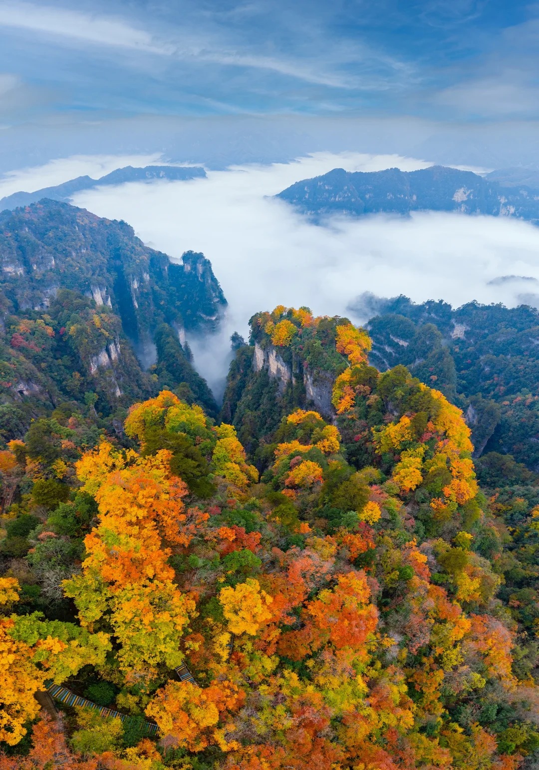 ขึ้นชื่อเรื่องใบไม้แดงในฤดูใบไม้ร่วงที่ปกคลุมทั้งหุบเขา และทะเลหมอกงดงามดั่งภาพวาด