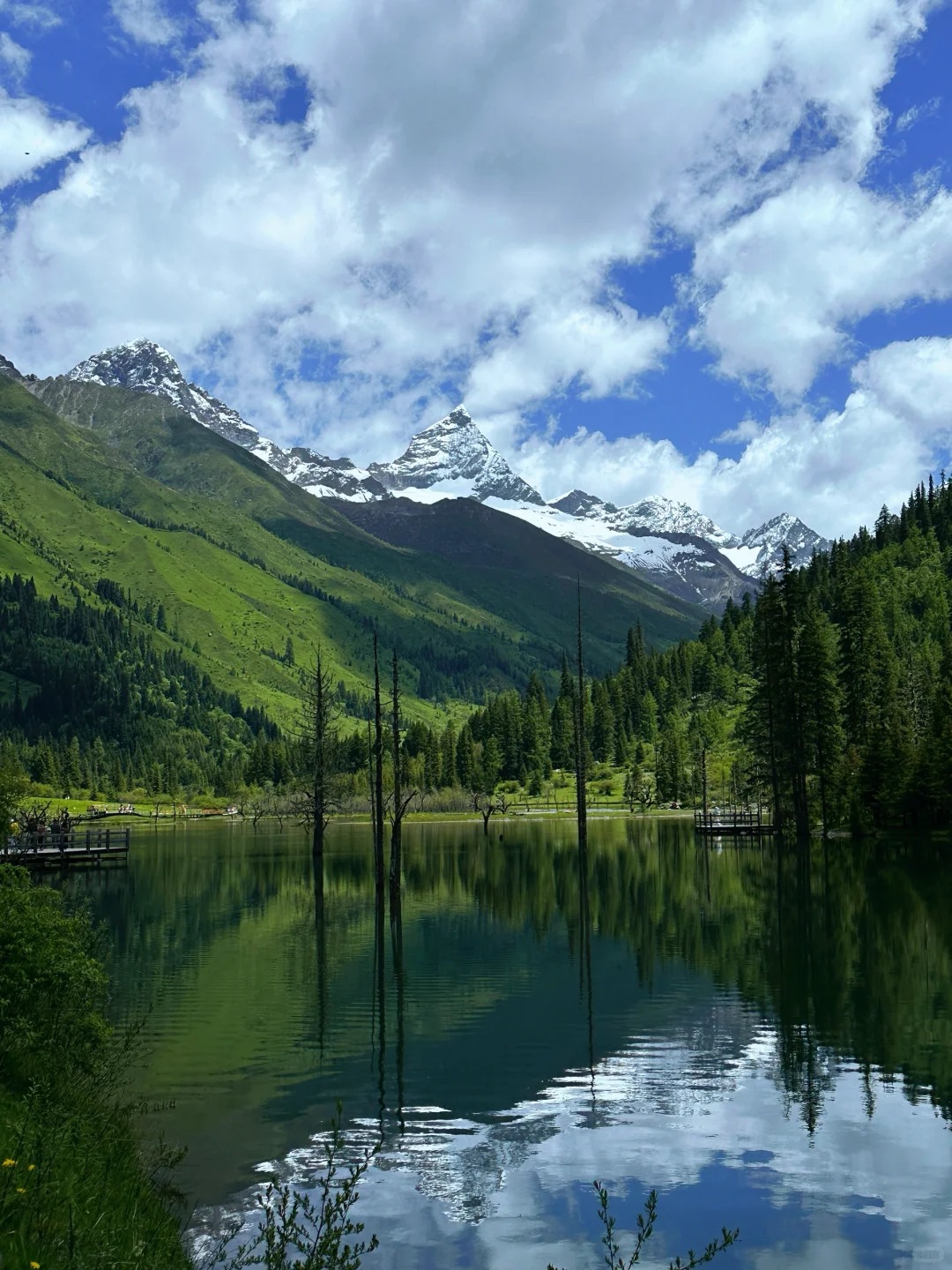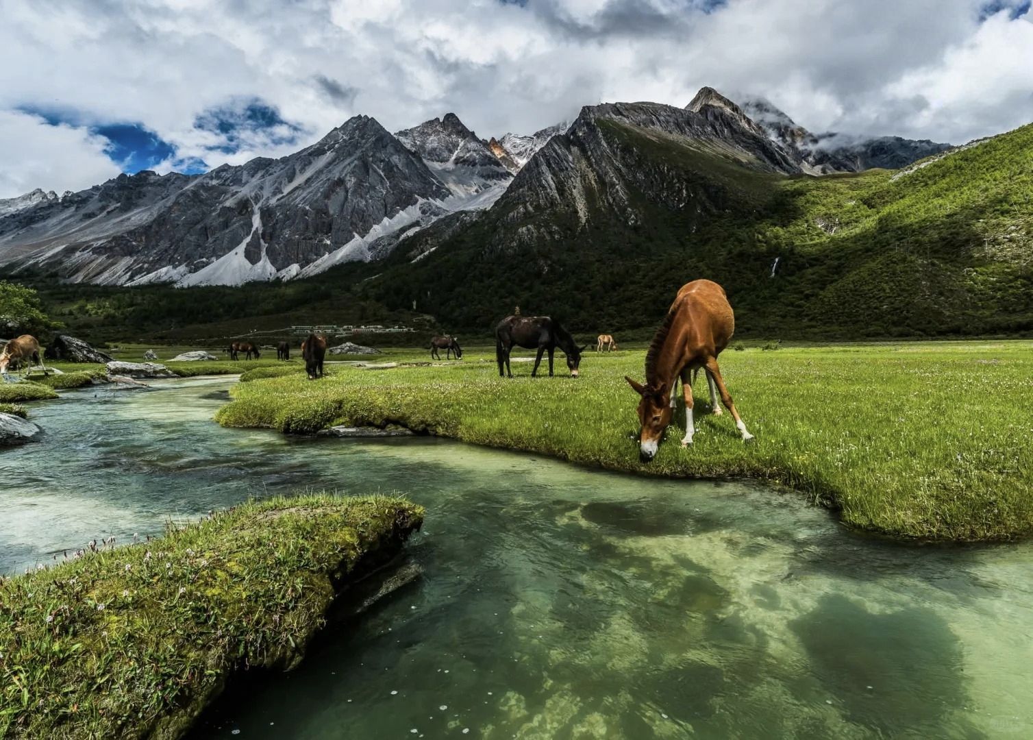 มีฉายาว่า “สวิสเซอร์แลนด์แห่งตะวันออก” ตั้งอยู่ในมณฑลกานจือ (甘孜州) มีเทือกเขาหิมะสูงกว่า 6,000 เมตร ทะเลสาบสีฟ้าเทอร์ควอยซ์ และทุ่งหญ้ากว้างใหญ่ที่เปลี่ยนสีตามฤดูกาล